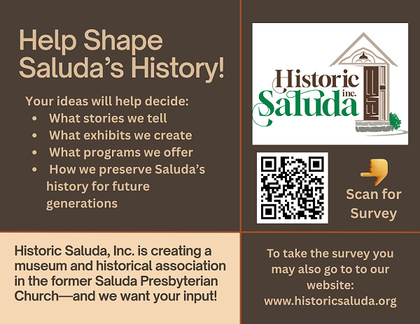Stay up to date by visiting our Facebook page. For more information about the Historic Saluda Committee contact us at historicsaluda@gmail.com
